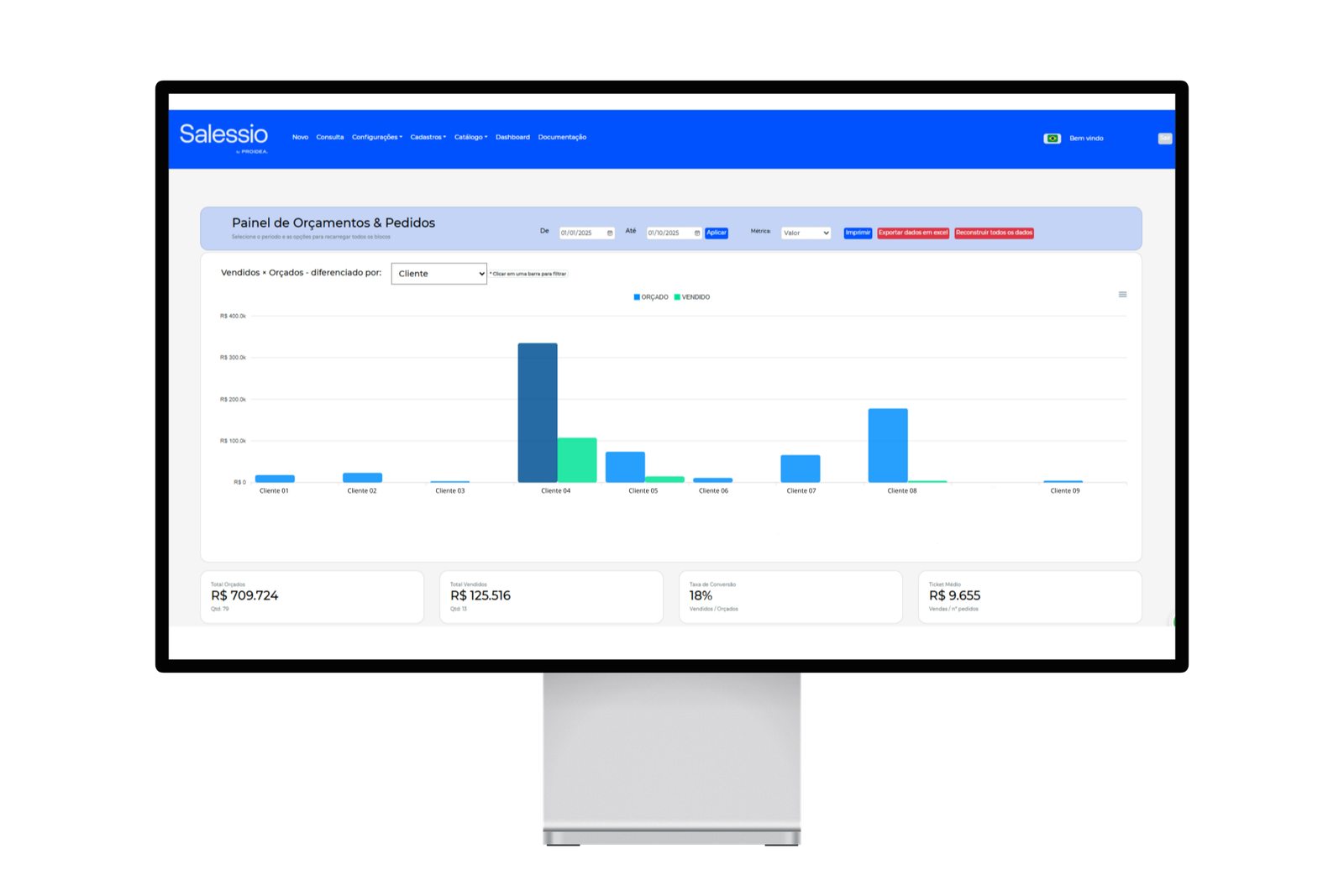 O Salessio foi desenhado para ir além do orçamento. Com ele, a empresa pode: